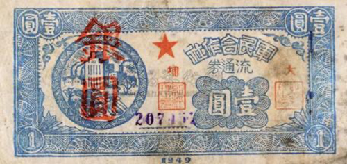 在抗戰(zhàn)勝利結束時,山東解放區(qū)已有極大發(fā)展,有12.5萬平方公里的面積,占山東總面積的92%,擁有2400萬人口,占山東總人口的90%。1948年10月,山東的北海銀行幣與華北的冀南銀行幣、晉察冀邊區(qū)幣固定比價互相流通,1948年11月16日起,北海銀行幣與華中銀行幣等價流通。這一時期的北海銀行幣均不加蓋地名,便于山東以外的地區(qū)流通。1948年12月1日,華北銀行、北海銀行、西北農民銀行合并,在石家莊成立中國人民銀行,但因工作的需要,北海銀行繼續(xù)營業(yè),1949年1月底開始回收北海銀行幣,同年11月1日改稱中國人民銀行山東分行,至此,北海銀行完成了它的歷史使命宣告結束。