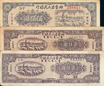 抗日戰(zhàn)爭勝利后,內蒙古人民最早實現了民族區(qū)域自治,1946年,東蒙古人民自治政府在烏蘭浩特成立,開始印發(fā)“人民自治政府政府暫行流通券”,起初在東北范圍內流通。1947年5月,內蒙古自治區(qū)人民政府成立,流通券改名為內蒙幣,并逐漸進入到原蒙疆地區(qū)開始流通,成為內蒙古地區(qū)百姓常用貨幣。