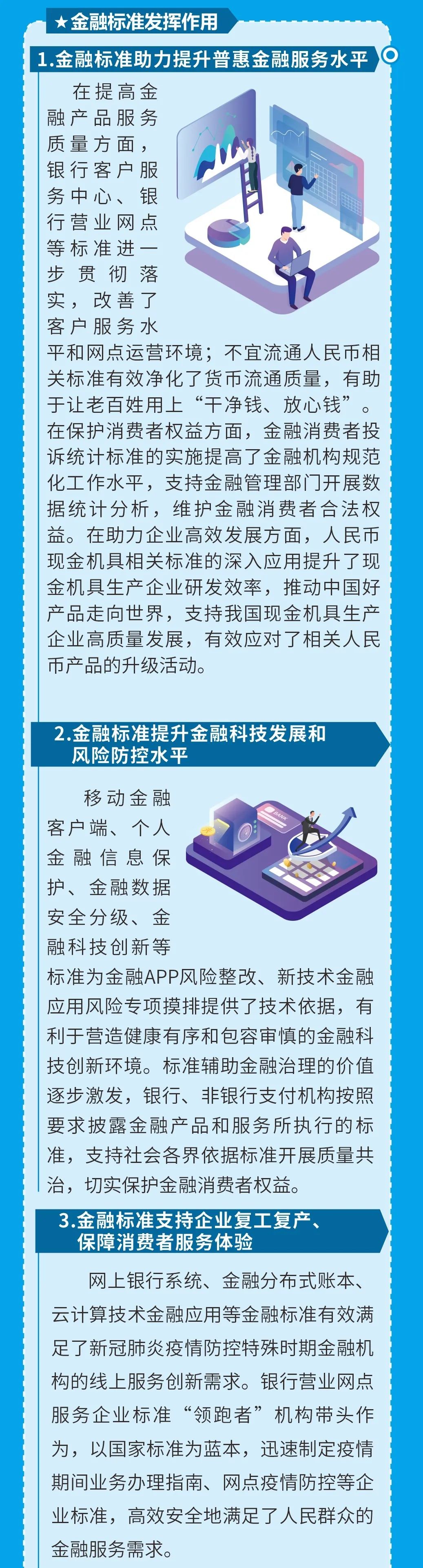 金融標(biāo)準(zhǔn)是金融業(yè)健康發(fā)展的技術(shù)支撐,是金融業(yè)治理體系和治理能力現(xiàn)代化的基礎(chǔ)性制度,中國人民銀行宣傳推廣重點(diǎn)金融標(biāo)準(zhǔn),切實(shí)做好金融從業(yè)人員及消費(fèi)者金融標(biāo)準(zhǔn)化宣教和普及工作,在行業(yè)內(nèi)營造對(duì)標(biāo)達(dá)標(biāo)的良好氛圍,引導(dǎo)消費(fèi)者使用達(dá)標(biāo)服務(wù)與產(chǎn)品,進(jìn)一步維護(hù)消費(fèi)者合法權(quán)益。