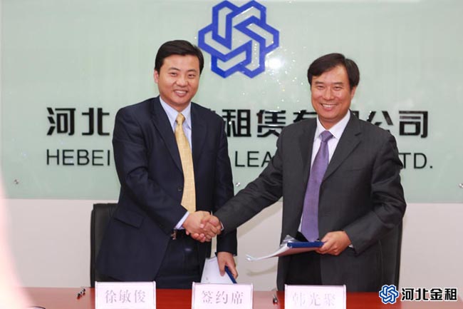 2012年4月17日,我公司與中信銀行石家莊分行在石家莊市河北建投大廈舉行了全面合作簽約儀式,公司總裁徐敏俊與中信銀行石家莊分行行長韓光聚代表雙方簽署了《全面合作協(xié)議書》,為充分發(fā)揮雙方優(yōu)勢,建立了長期、穩(wěn)定、良好的合作關(guān)系。雙方就銀租合作需求進(jìn)行深入探討,進(jìn)一步達(dá)成“地域性合作”需求,立足河北,共同致力于為客戶提供專業(yè)化的銀行與租賃的綜合金融服務(wù),實(shí)現(xiàn)強(qiáng)強(qiáng)聯(lián)合、優(yōu)勢互補(bǔ)和效益共贏。