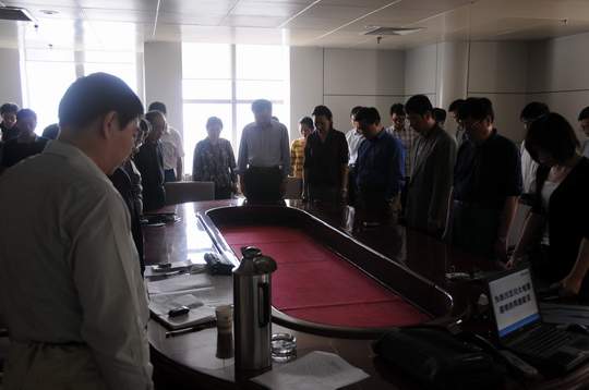 5 月 19 日 ,下午 2 : 28 舉國默哀三分鐘。河北金租會議室,默哀氣氛莊嚴(yán)肅穆,只聽窗外汽笛齊鳴,于是心有感念:愿生者堅強(qiáng)振作,早日重建家園,死者則安心長眠,天堂沒有地震。